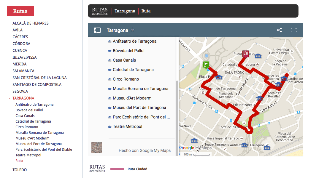 En aquest portal web es té accés a informació sobre rutes accessibles per conèixer el patrimoni històric de diverses ciutats espanyoles. La responsable del projecte és la Plataforma Representativa Estatal de Persones amb Discapacitat Física (PREDIF), qui va rebre l’encàrrec de la Comissió d’Accessibilitat del Grup de Ciutats Patrimoni de la Humanitat d’Espanya i una subvenció del Ministeri de Cultura. Les ciutats sobre les que pot trobar-se informació són: Alcalá d’Henares, Àvila, Càceres, Còrdova, Conca, Eivissa, Mèrida, Salamanca, Sant Cristóbal de la Laguna, Santiago de Compostel·la, Segòvia, Tarragona i Toledo.